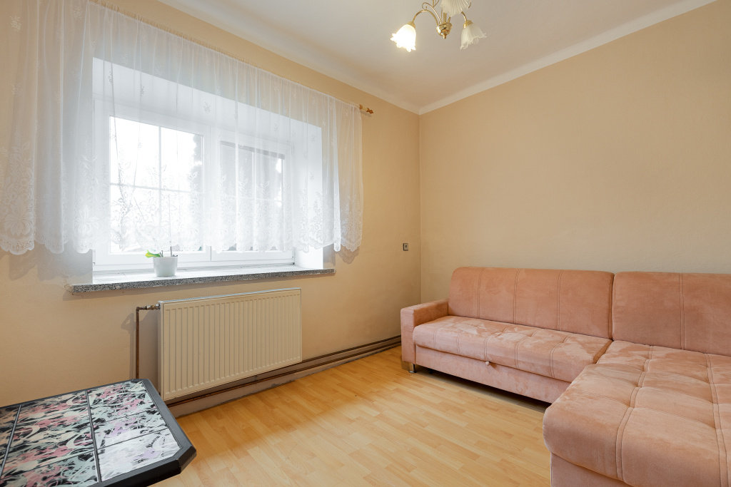 Byt 3+1 v přízemí disponuje 3 samostatnými pokoji, koupelnou vybavenou vanou i sprchovým koutem spojeným s WC. Byt 1+1 je zařízený kuchyňskou linkou, koupelnou spojenou s WC a sprchovým boxem a technickou místností s přípravou na pračku.