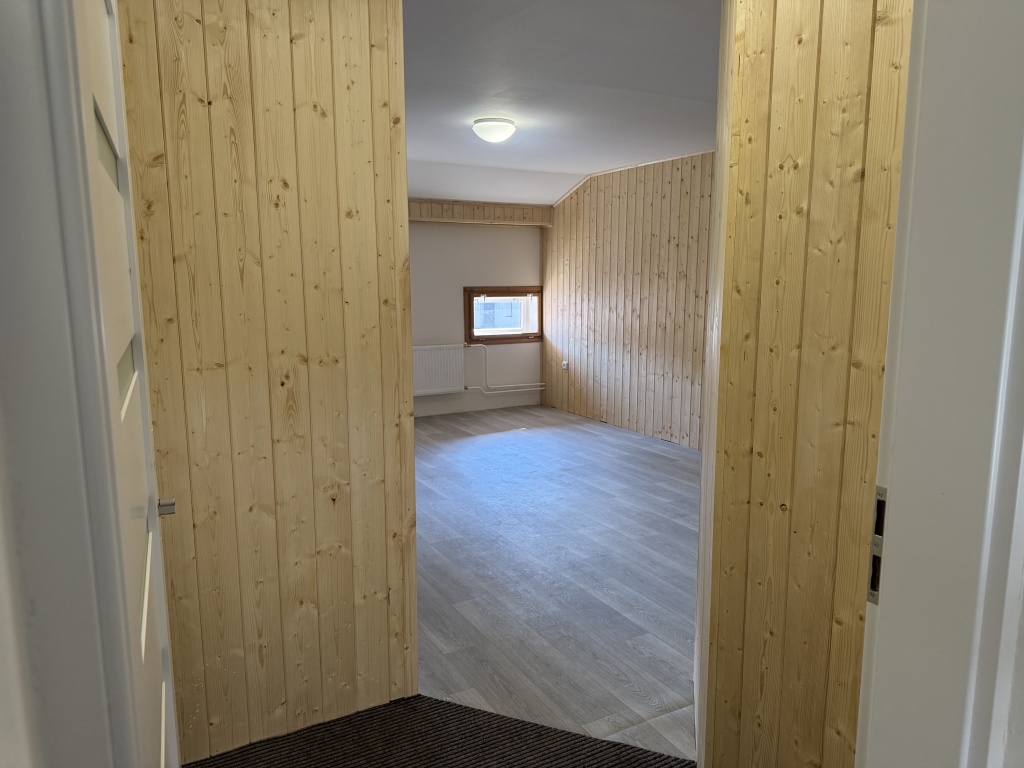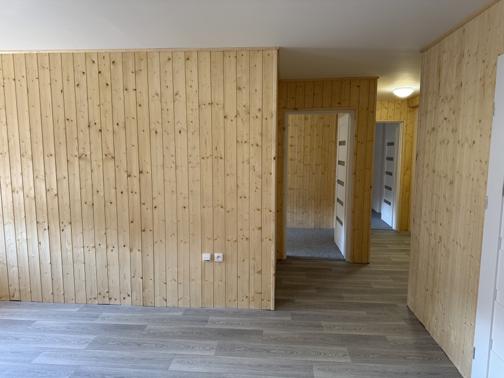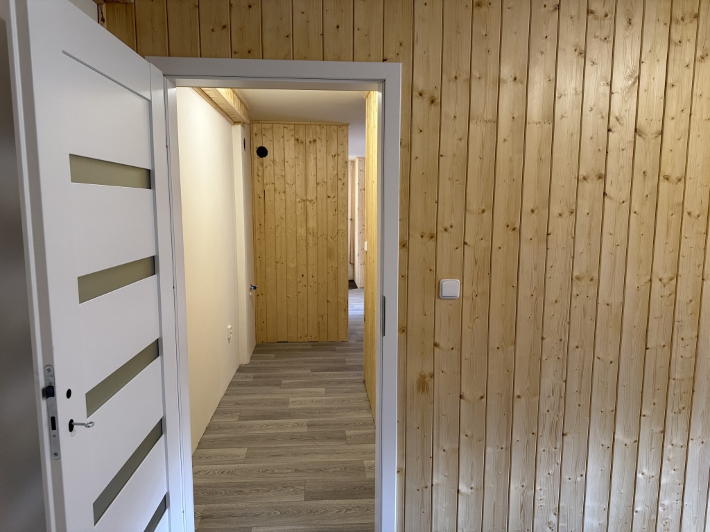Byt je po částečné rekonstrukci a nabízí kuchyňský kout propojený s obývacím pokojem, dva samostatné pokoje a koupelnu se sprchovým koutem a WC. V kuchyni a předsíni je lino, v pokojích koberec a v koupelně dlažba.
