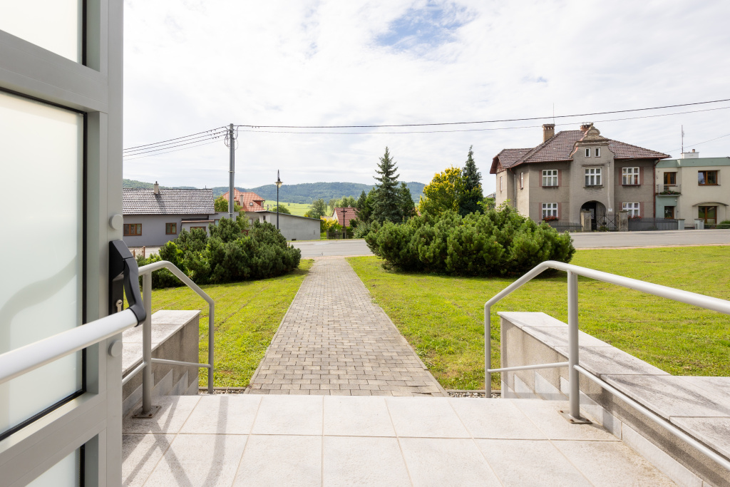 Zaparkujete přímo před domem bez starostí. V okolí máte všechno po ruce – obchod na nákupy, restauraci na oběd, základní i mateřskou školu, poštu, lékaře i autobusovou zastávku. Zkrátka vše, co ke spokojenému životu potřebujete.